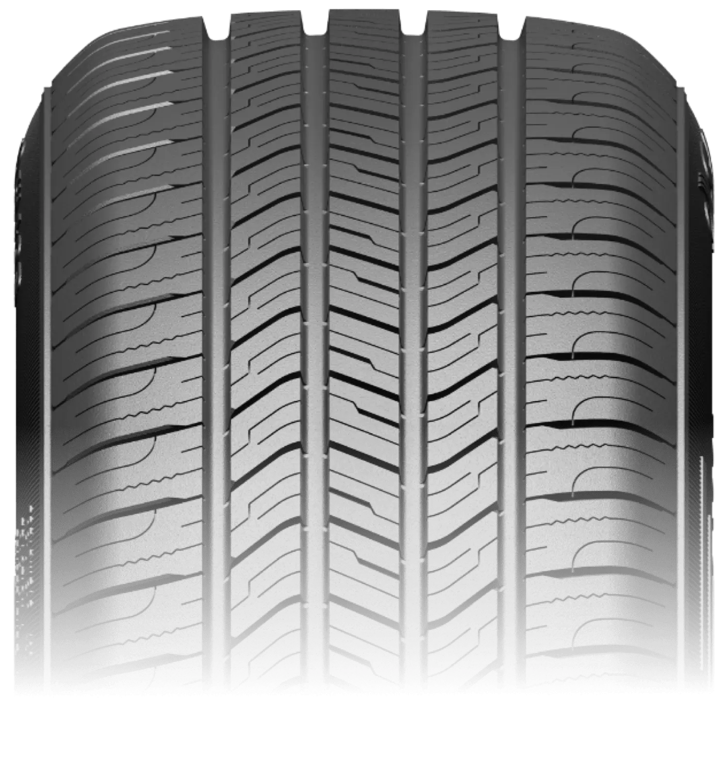 Les barrettes de la bande de roulement décalées assurent une harmonisation efficace avec la route, pour une conduite silencieuse.